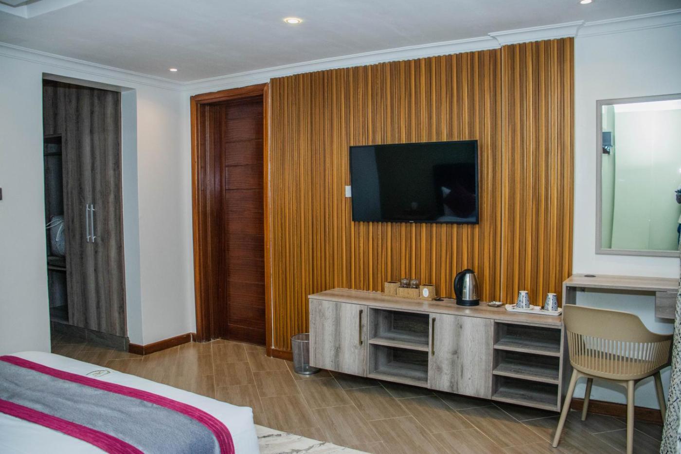 At the hotel, rooms come with a wardrobe and a flat-screen TV. Featuring a private bathroom with a shower and free toiletries, some rooms at Desert Rose Resort Kisumu also boast a city view. The rooms at the accommodation have air conditioning and a desk.